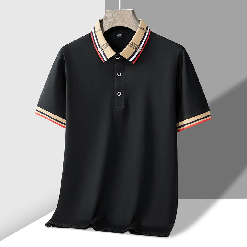 This elegant polo shirt blends classic sophistication with modern plaid accents, making it a stylish choice for any occasion. Made with breathable fabric, it provides all-day comfort with a refined, tailored fit.